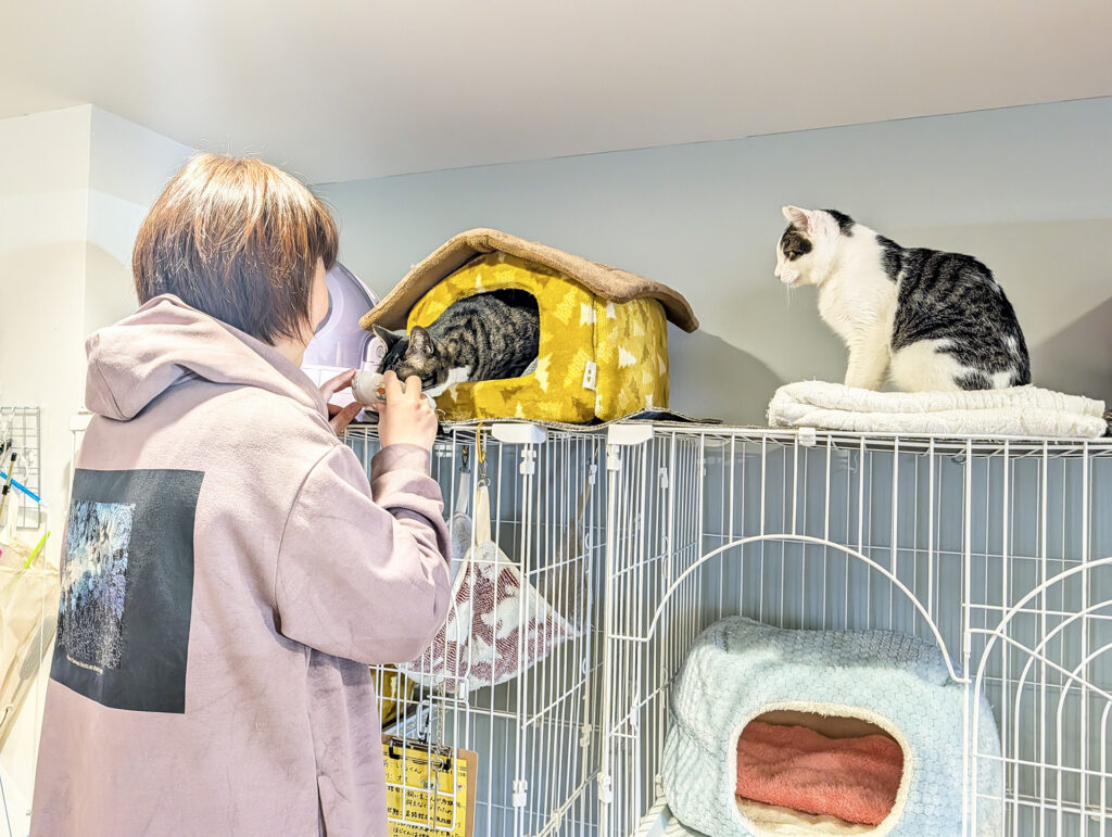 ここでは常に人の気配があります。猫たちはその環境で過ごすうちに、「人がいることが普通で、でも安心」ということを学習してもらいます。