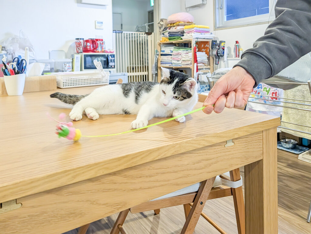 私たちは、子どものうちから猫と遊び、遊びながら命に触れて何かを感じ取ってもらいたい、そんなことを思っています。